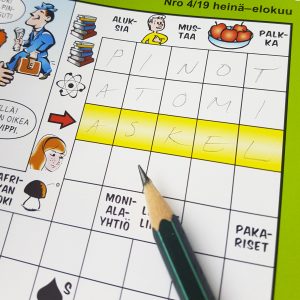 Olen kuullut, että ristikoiden ratkomista pidetään vanhojen ihmisten hommana. Oli miten oli, olen aina pitänyt touhusta! Kai olen sitten vanha sielu? Ja ehkäpä ristikkoihminen on sukua listaihmiselle? Minä ainakin saan iloa siitä, että ristikko tulee valmiiksi. Ja kyllähän se ratkomiseen keskittyminen vie ajatukset pois kaikesta muusta, ja toimii siten mainiosti nollaamisena ja rentoutumisena. Väittäisin, että ristikkopuuha on myös kevyttä aivojumppaa, joten sen täytyy olla myös hyödyllistä 🙂